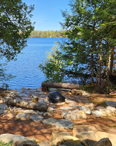 A firepit, situated by the lake, is safely contained in a metal protector with a screen cover. It is surrounded by flagstone with bench seating. Fire safety and strict compliance to municipal and/or provincial regulations will be monitored and enforced.