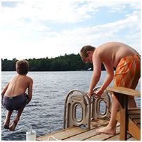 Lots of flat land to play games and let children run; reasonably easy for those with mobility issues to manage access to all buildings and dock, with assistance. Parking is not a problem.
